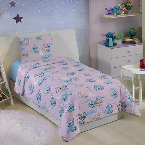 Deixe o quarto mais divertido e aconchegante com o Jogo de Cama Solteiro Estampado Stitch. Produzido em microfibra de alta qualidade, o conjunto é macio ao toque, leve e fácil de cuidar. Ideal para crianças e fãs do personagem, esse jogo traz cor, conforto e personalidade para a cama.